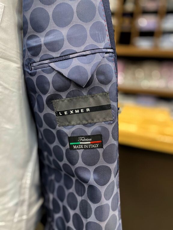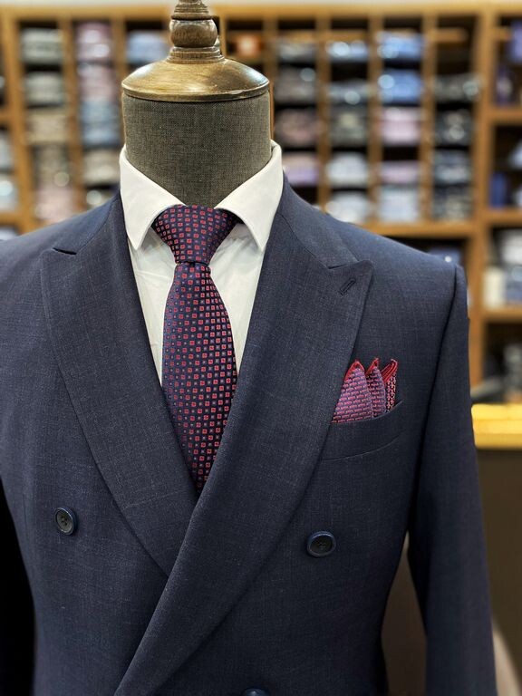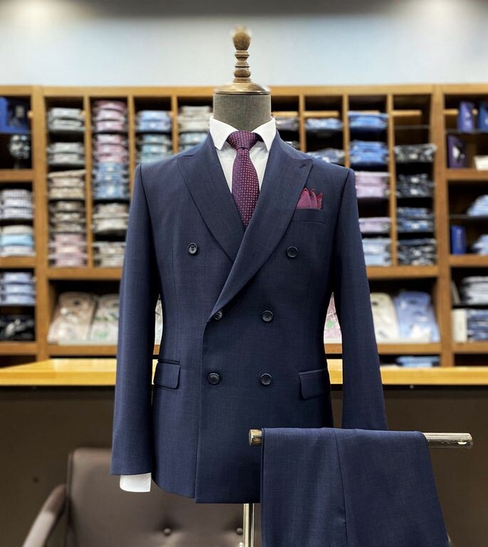 Двубортный костюм-двойка тёмно-синего оттенка их итальянской шерсти