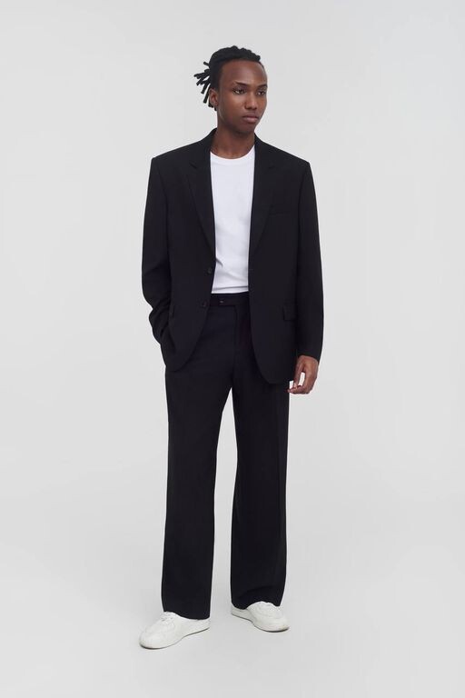 Классический оверсайз костюм-двойка черного оттенка с брюками и пиджаком свободного кроя