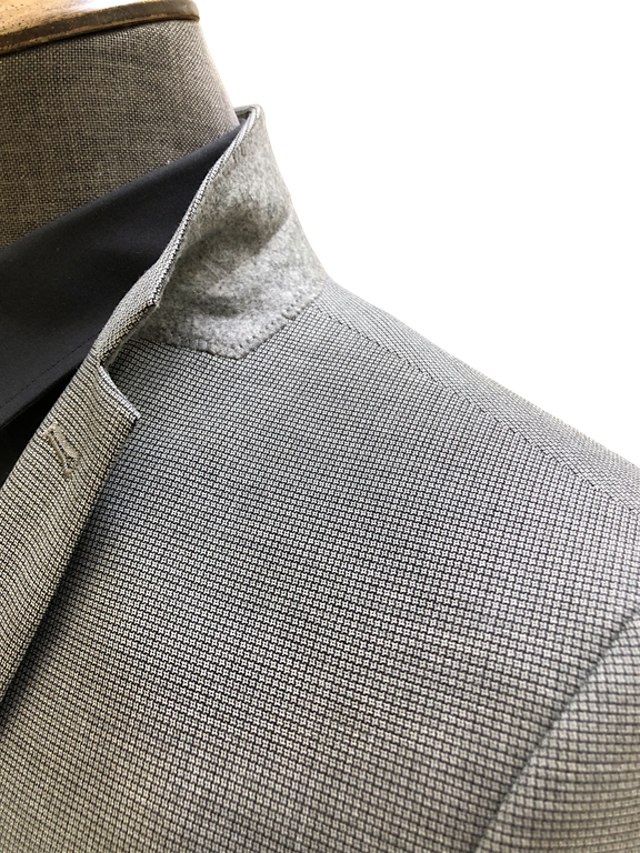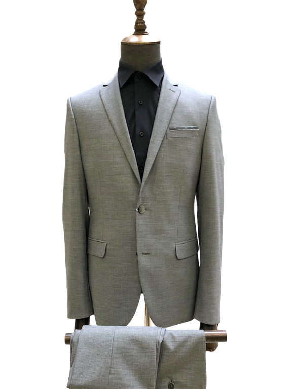 Серый костюм-двойка в мелкую серую клетку