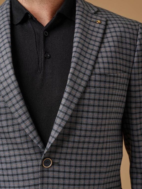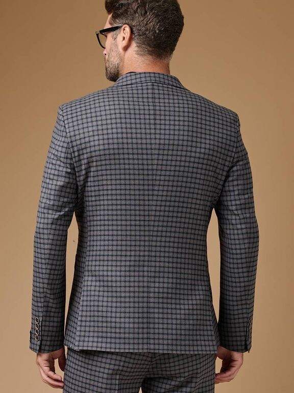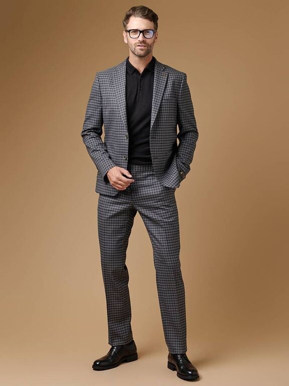 Мужской костюм-двойка в небольшую тёмную клетку серого оттенка