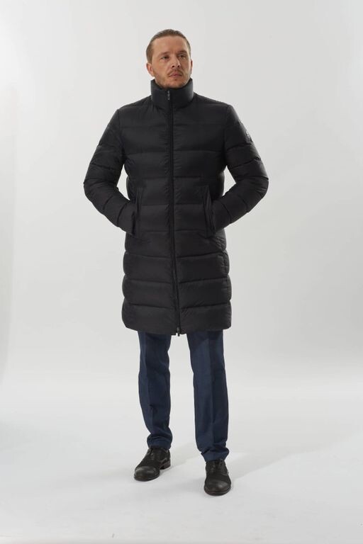 Пальто мужское на натуральном пуху (90% Пух, 10% Перо) выполнено из водооталкивающей ткани.