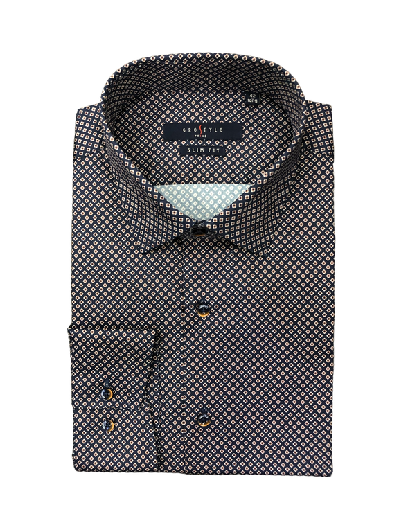 Мужская классическая рубашка из серии Prime из высококачественного сатина в коричнево-белый ромб. Легко гладить, не пиллингуется, не подвержена усадке.