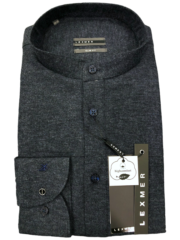 Классическая мужская рубашка с воротником стойкой темно-синего цвета